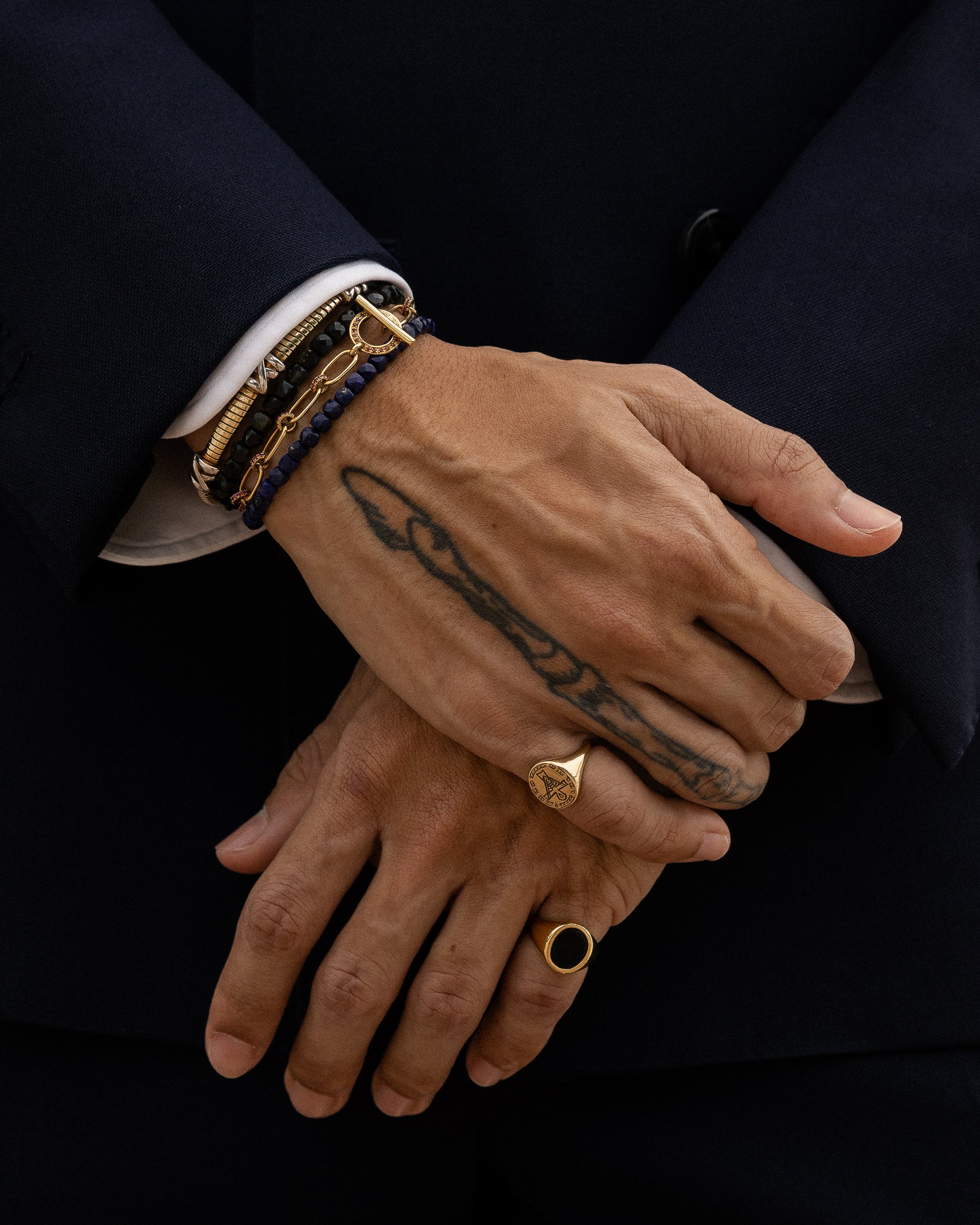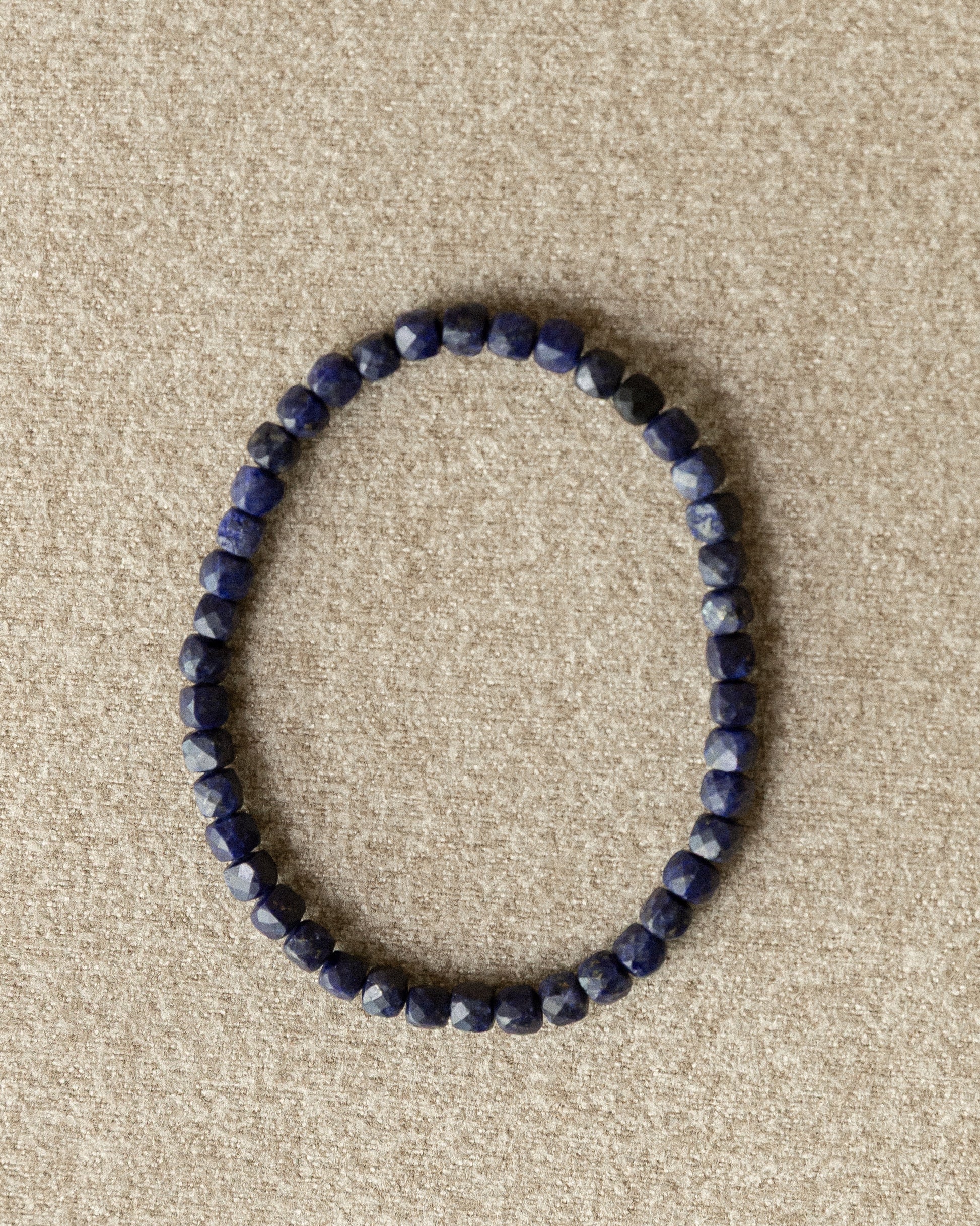 With its rich blue tone and subtle natural variations, the bracelet introduces a quiet sophistication — a classic colour that complements tailoring and daily wear.